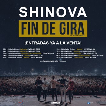 La banda Shinova ha anunciado las fechas fin de gira de presentación de "La Buena Suerte" su último trabajo que llevan presentando varios meses. Las próximas ciudades que tendrán el placer de recibirlos durante 2023 serán Valencia, Santiago de Compostela, Bilbao, Madrid, Almería, Córdoba, Vitoria y Barcelona.