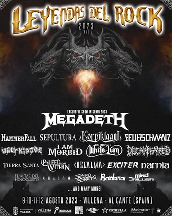 Megadeth, Hammerfall, Sepultura, Korpiklaani, Feuerchwandz, Ugly Kid Joe, I am Morbid, Mike Tramp - de White Lion, Decapitated, Tierra Santa, Bleed from Within, Delalma, Exciter, Narnia, El Altar del Holocausto, Shalom, Pedro Botero; Badana, Mind Drillery Dragonfly.