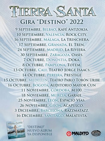 Tierra Santa arranca su nueva gira "Destino" por todo el territorio nacional. La banda riojana recorrerá los escenerios de las salas más relevantes del panorama musical, e incluirán varios conciertos en el mes de octubre en varias ciudades de Colombia, país donde siempre han sido recibidos con una gran expectación.