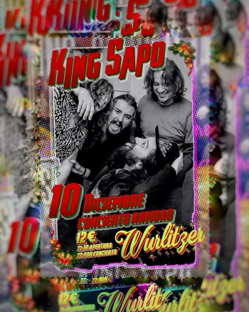 Concierto de Navidad de King Sapo. La banda madrileña, que ha publicado este año su tercer disco "Sexo en Marte", estarán tocando el próximo día 10 de diciembre en la mítica sala Wurlizter a partir de las 21:30. Las entradas están a la venta al precio de 12€ anticipada