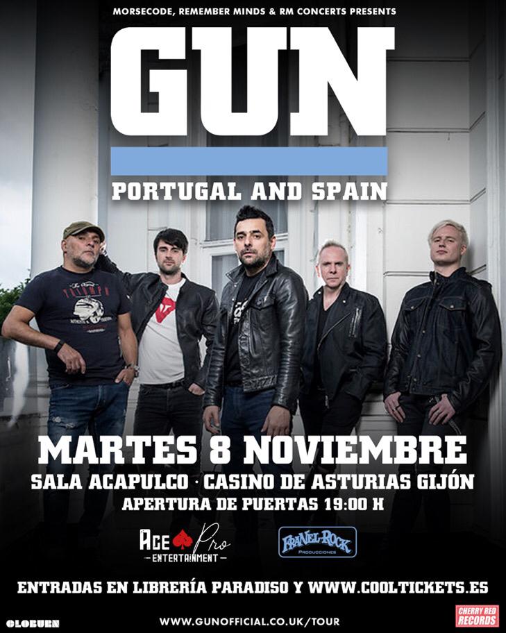 Ya queda menos para que los escoceses Gun visiten España y Portugal durante el próximo mes de noviembre, una gira que tendrá parada en Asturias, más concretamente en la Sala Bossanova Acapulco de Gijón el ocho de noviembre. La apertura de puertas será a las 19:00h y las entradas están disponibles a un precio de 25€ (más gastos), en Librería Paradiso en Gijón y online en www.cooltickets.es.
