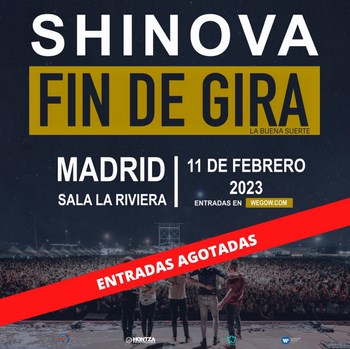 La gira "La Buena Suerte" de Shinova llega a su fin. Como muestra del éxito, la banda ha agotado entradas para el próximo día 11 de febrero en La Riviera de Madrid. Pero aún quedan para el día 10, aunque están volando. No te quedes sin ella.