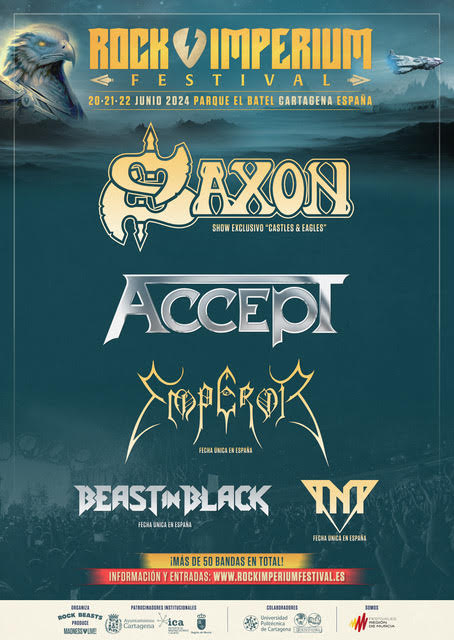 El festival Rock Imperium ha anunciado la primera tanda de confirmaciones, compuesta por Saxon, con su show "Castles and Eagles", con el que celebran su primer álbum en vivo "The eagle has landed", Accept, Emperor, Beast in Black y TNT, estos tres últimos como fecha única en España.
