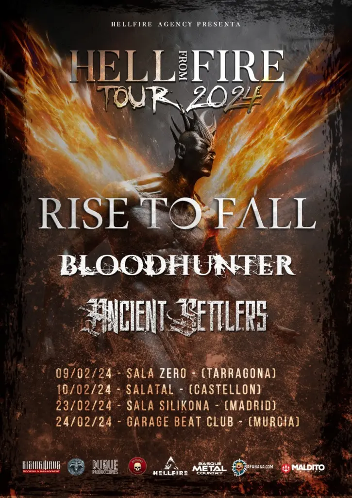 En este 2024, Hellfire Agency apuesta por el metal estatal y presenta "Hell From Fire Tour 2024". Una gira que reunirá a una institución del death metal melódico como lo es Rise To Fall, quienes están en plena fase de presentación de su último disco "The Fifth Dimension", a una de las bandas más contundentes del death metal, Bloodhunter comandados por su talentosa vocalista "Diva Satanica", y a una de las promesas del death metal melódico Ancient Settlers quienes se encuentran en plena promoción de su último Ep "Transition".