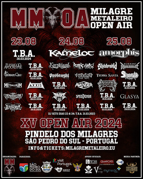 El Festival Milagre Metaleiro que se celebrará del veintitrés al veinticinco de agosto en Pindelo Dos Milagres (Portugal) continúa anunciando bandas para su próxima edición. Las últimas incorporaciones anunciadas han sido las de los norteamericanos Kamelot como cabezas de cartel de la jornada del sábado y bandas de diferentes estilos como Kissin' Dynamite, Glasya, Vanaheim, Dark Oath, Malignea o Invoke que se suman al extenso cartel. Los abonos de tres días están a la venta por 45€ en oferta hasta el veintinueve de febrero. Para más información y venta de entradas podéis visitar la web oficial del festival en este enlace.