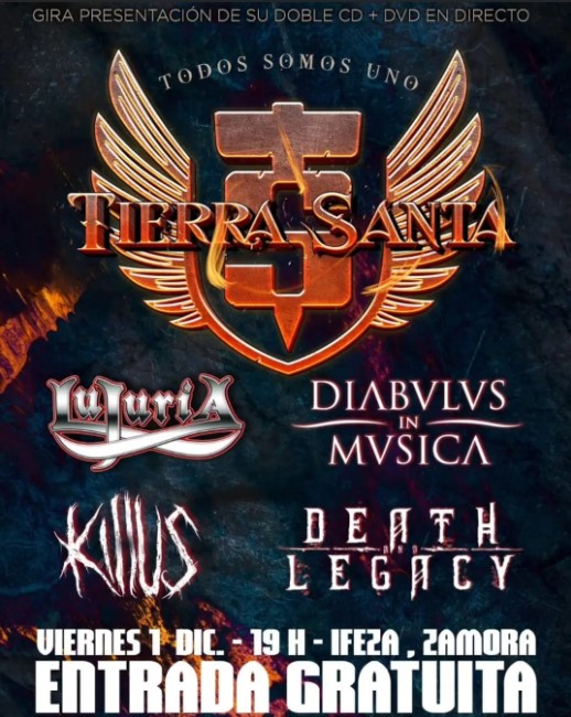 El próximo concierto de Lujuria será en Zamora, junto a Tierra Santa, Diabulus in Musica, Killus y Death and Legacy, el viernes 1 de diciembre en IFEZA, con entrada gratuita.